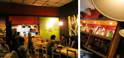 Algo si me molestó, ahora que me acuerdo, y fue el resto de la clientela. Supongo que es de esperarse que en un lugar de bares a las 10-11 de la noche hayan grupos grandes de "fiesteros" (que señora me siento diciendo eso), pero cuando entramos habían dos grupos grandes de como 3 mesas cada uno, y el que teníamos inmediatamente a la par era de carajillos gritones. "-Qué me decías de las pinturas, Diego? -Es que esas... -Mae, no sea tan playo!! -...las de aquella pared... -Este hijueputa me quiere pegar un beso! -son muy Art Noveau..." y así hasta que se fueron, gracias a Dios (y no es que todos presuntuosos hablando de arte, uy uy, ese fue el único comentario, pero lo recuerdo específicamente y por eso lo pongo).